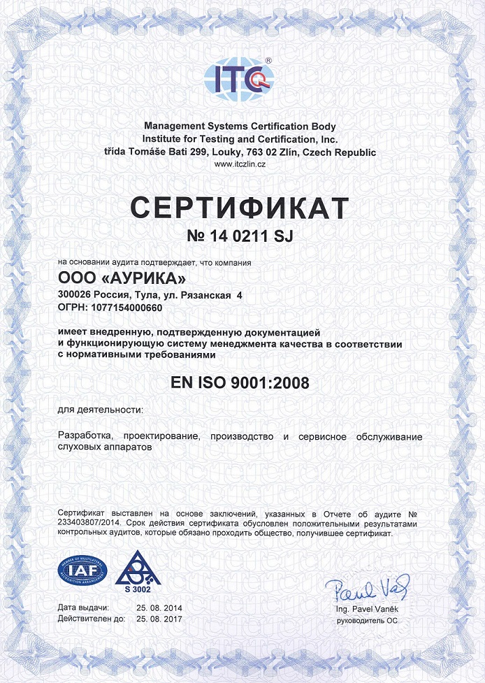 Залогом высокого качества продукции, предлагаемой компанией Aurica, является строгое следование европейским стандартам качества в сфере слухопротезирования, постоянный и жесткий контроль при производстве каждого слухового аппарата за соответствием современным нормативам на всех ступенях производственного процесса. Каждый слуховой аппарат, предлагаемые нашей компанией, производятся в полном соответствии с европейскими стандартами. Комплектующие для сборки аппаратов поставляются из Италии, Германии, Швейцарии, США и Канады.